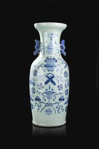 Vaso in porcellana bianco e blu con decori di palloni e festoni Cina dinastia Qing XIX Sec. 58 5x 23 cm