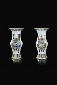 Coppia di vasi in porcellana Famiglia Rosa decorate con incensieri e iscrizioni Cina dinastia Qing XIX Sec. [..]