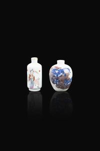 Due snuffle bottle in porcellana una Famiglia Rosa l'altra bianca e blu Cina dinastia Qing XIX Sec. 7x5 cm [..]