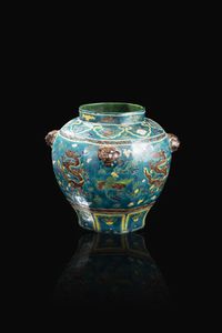 Vaso ottagonale i porcellana policroma decorato con draghi a rilievo Cina Repubblica [..]