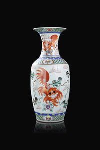 Vaso in porcellana Famiglia Rosa decorato con cani di Pho Cina Repubblica XX Sec. 55x24 cm