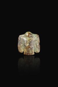 Pendente in giada verede a forma di uccello Cina probabilmente periodo Zhou o Han (770 a.C. 220 d.C.) 4x4 3 [..]