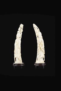 Coppia di statue raffiguranti Peng Zu e ragazza con fiori in testa. Cina Repubblica XX Sec. 29x7 cm Presente [..]