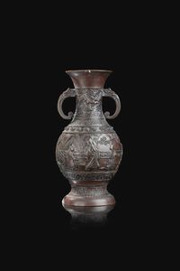 Mobiletto cinese in legno con apertura a ribalta intarsiato con scene portuali Cina dinastia Qing XIX Sec. [..]