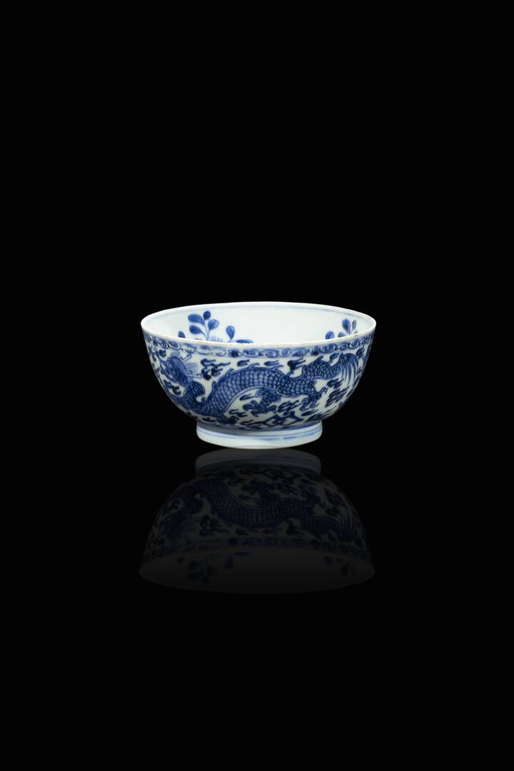 Ciotola in porcellana bianca e blu dipinta con draghi Cina Repubblica XX Sec. [..]