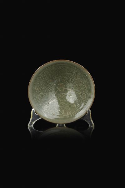 Ciotola in porcellana Celadon decorata con uccelli Cina Repubblica XX Sec. 6x18 [..]