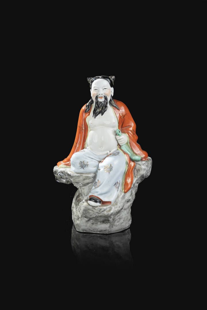 Dignitario seduto su roccia in porcellana Famiglia Rosa Cina dinastia Qing XIX [..]