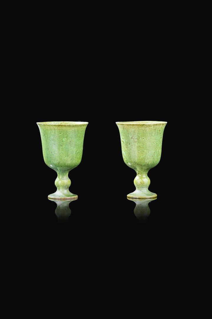Due coppette in porcellana dipinte in verde marmorizzato Cina Repubblica XX Sec. [..]