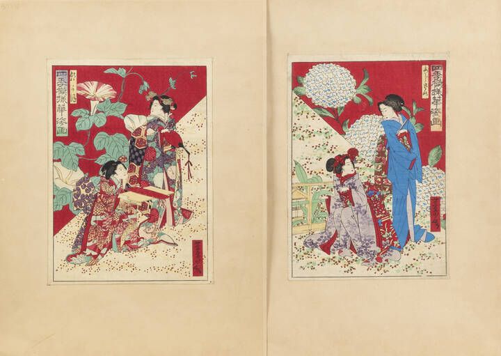 Due pergamene dipinte con Geishe Giappone prima meta' del XX Sec. 24 1x17 3 cm