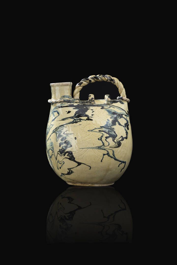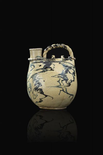 Fiasca in gress con manico con decori sotto smalto incisi Cina dinastia Qing [..]