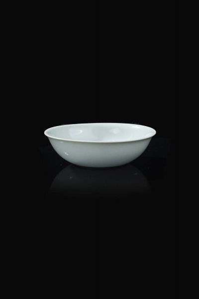 Piattino in porcellana Blanc de Chine con decoro di drago nascosto Cina Repubblica XX Sec. Marchio apocrifo Kangxi (1662-1722) 4x14 5 cm