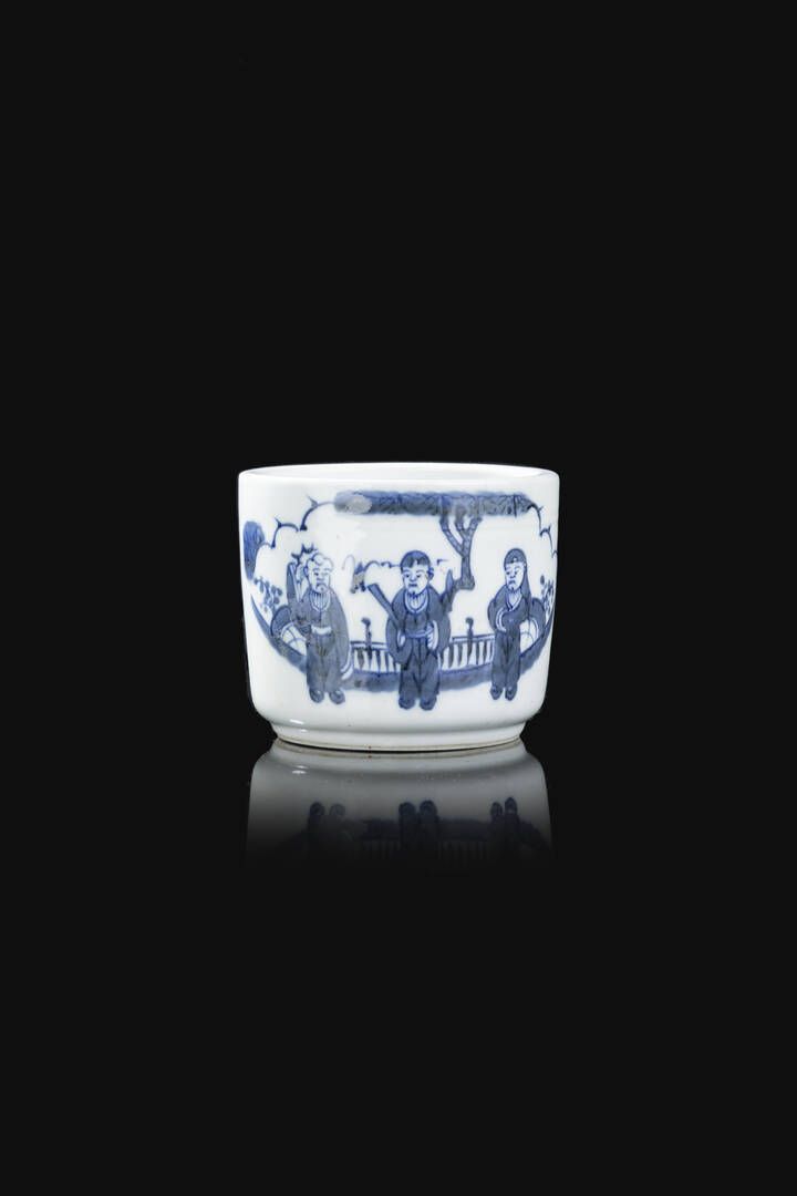 Porta pennelli in porcellana bianca e blu decorata con personaggi Cina Repubblica [..]