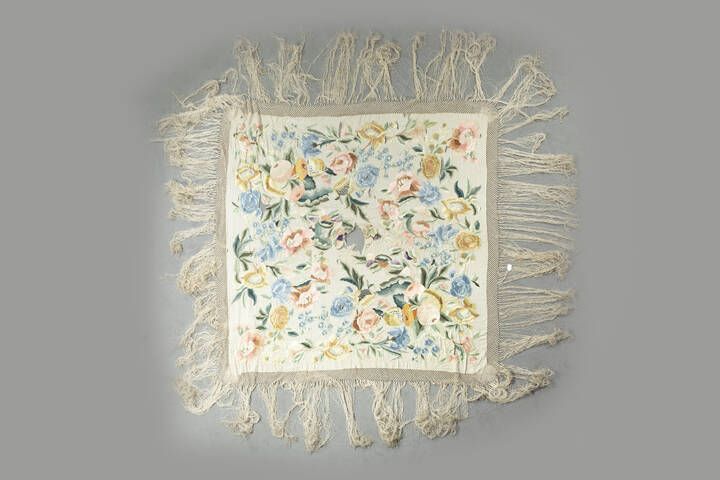 Ricamo in seta finemente lavorato a motivi floreali Cina dinastia Qing XIX Sec. 160x160 cm