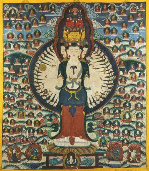 Tangka dipinto su seta rappresentante Buddha dalle mille braccia Tibet inizi XIX [..]