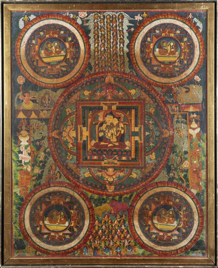 Tangka dipinto su seta rappresentante mille divinità Tibet XIX Sec. 98x78 cm