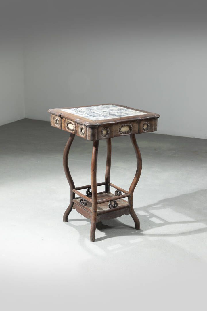 Tavolino in legno con top in marmo Cina Repubblica XX Sec. 80x55 cm