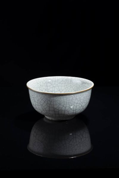 Vasca in porcellana bianca con craquelure Cina dinastia Qing XIX Sec. 13 5x27 5 cm