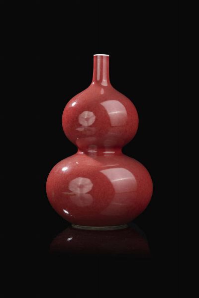 Vaso a doppia zucca in porcellana sangue di bue Cina Repubblica XX Sec. Marchio [..]