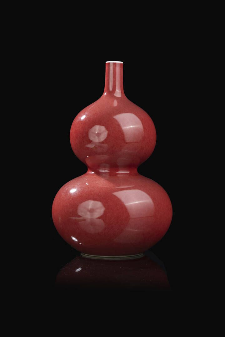 Vaso a doppia zucca in porcellana sangue di bue Cina Repubblica XX Sec. Marchio apocrifo Qianlong (1735-1795) 32x20 cm