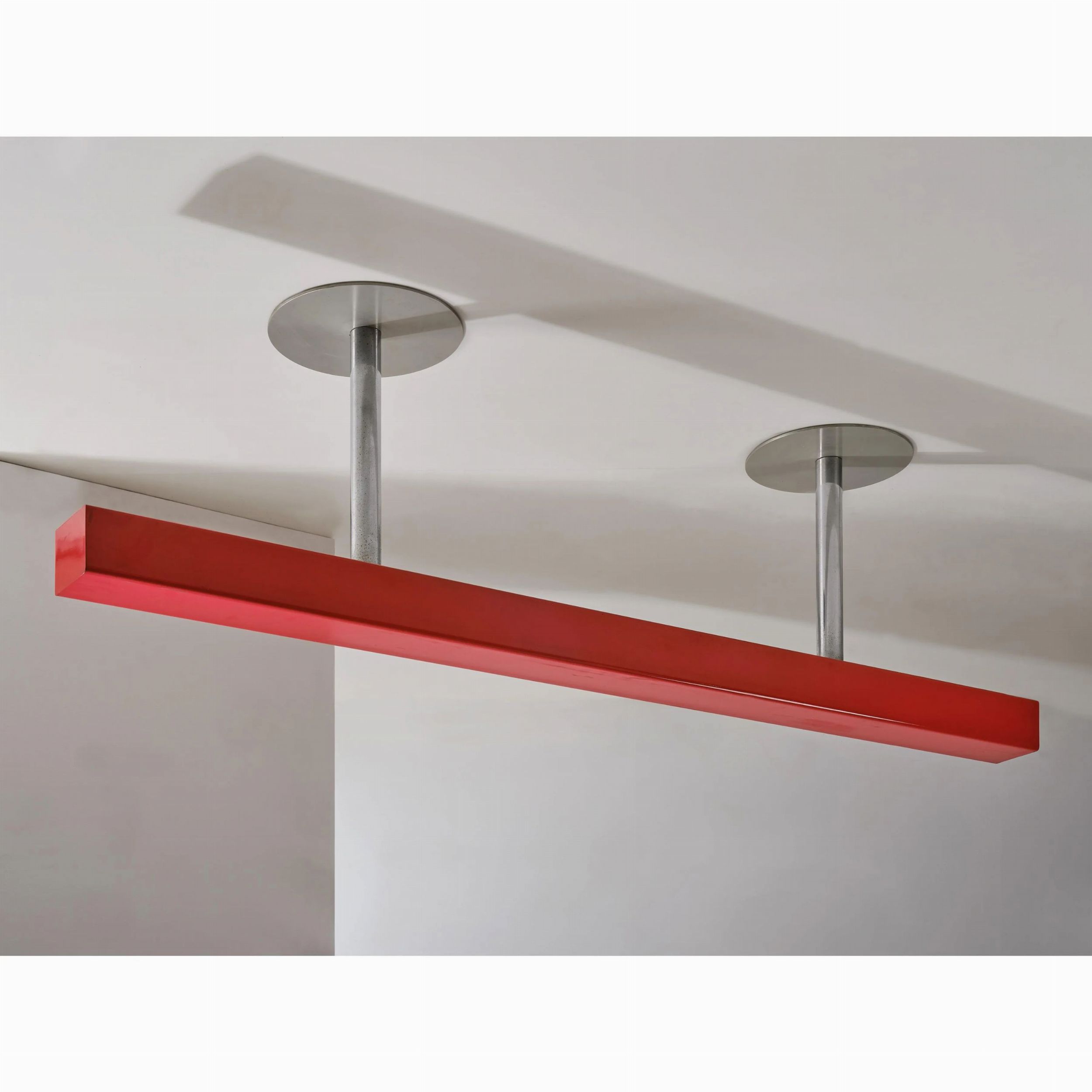 Ettore Sottsass e (Innsbruck, 1917 - Milano, 2007) Johanna Grawunder (San Diego, 1961) LAMPADARIO in metallo laccato nei toni del rosso Produzione Italia, 1993 con la collaborazione di Paolo De Lucchi cm H60xL240xP37,5 Arredi disegnati per gli uffici della Cementeria Merone