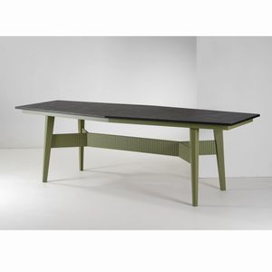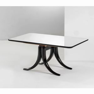 MOBILE CASSETTIERA in legno con ripiano in vetro nero Produzione Italia, 1935 circa cm H83xL122xP52 [..]