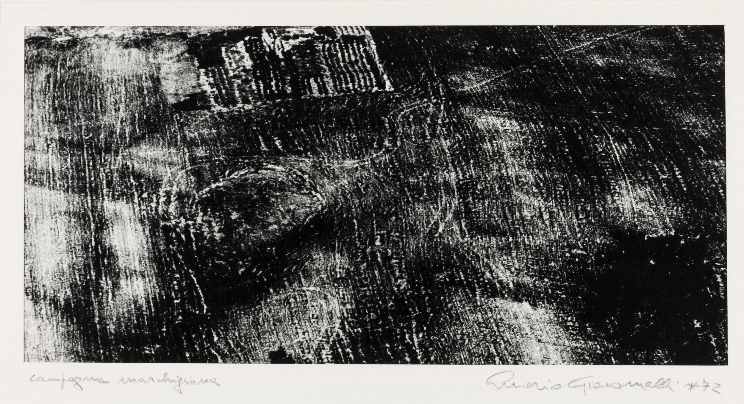 stampa alla gelatina ai sali d’argento, cm 21,5x39,5 (cornice cm 35x55) 1972 titolata in basso a sinistra a matita firmata e datata in basso a destra a matita timbro del fotografo e timbro Eredi Mario Giacomelli al retro opera in cornice