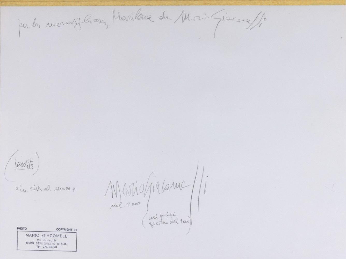 stampa alla gelatina ai sali d'argento, cm 30,5x40 (cornice cm 43x52,5) 2000 firmata sull'immagine iscritto 'inedita' a matita al retro timbro del fotografo al retro dedicata, firmata, titolata e datata 'nei primi giorni del 2000' al retro opera in cornice