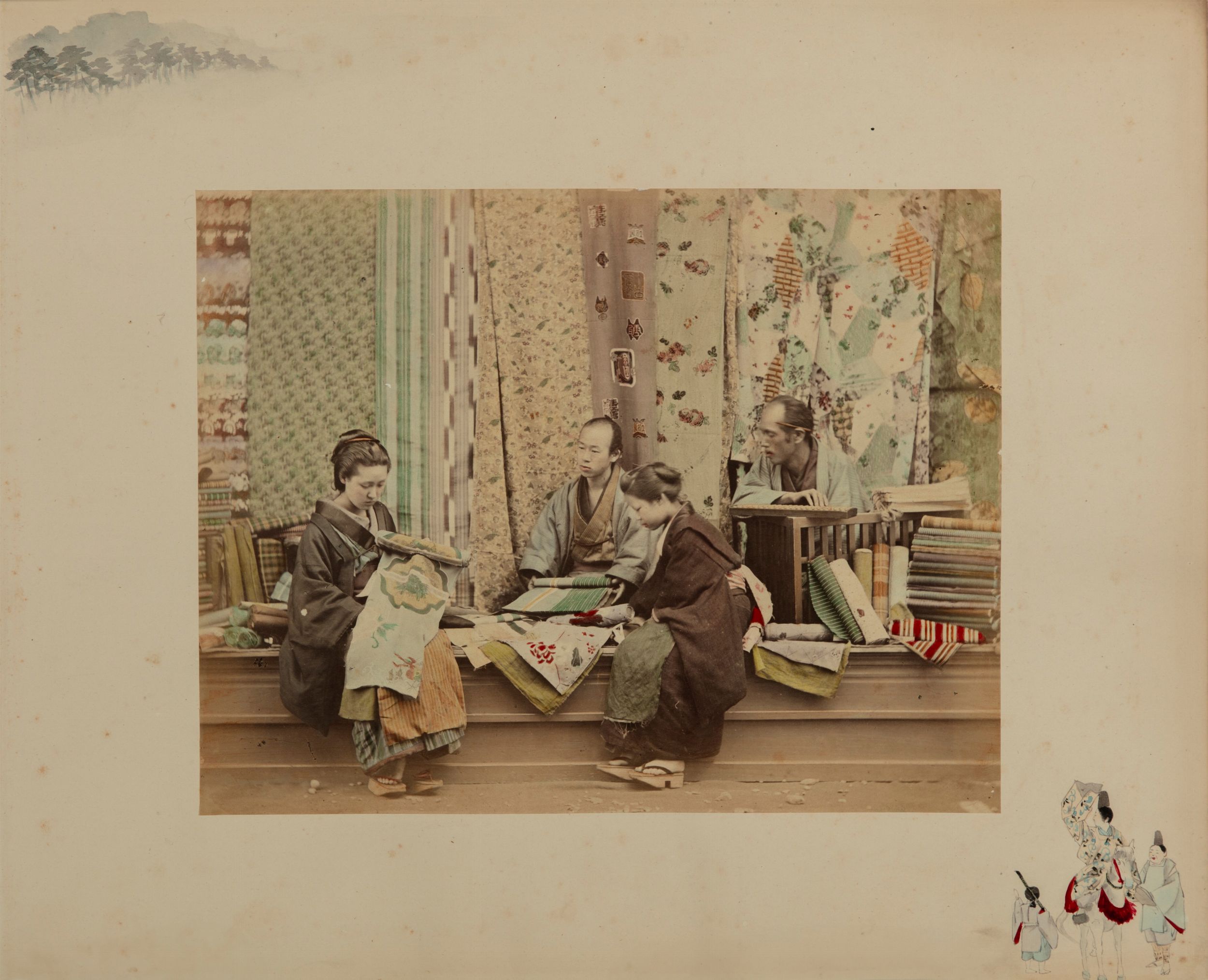 Stampa all'albumina colorata a mano, applicata a cartoncino originale con disegni a china e acquerel, cm 19 x 24,5 (cm 30,4 x 37,8 cartoncino)