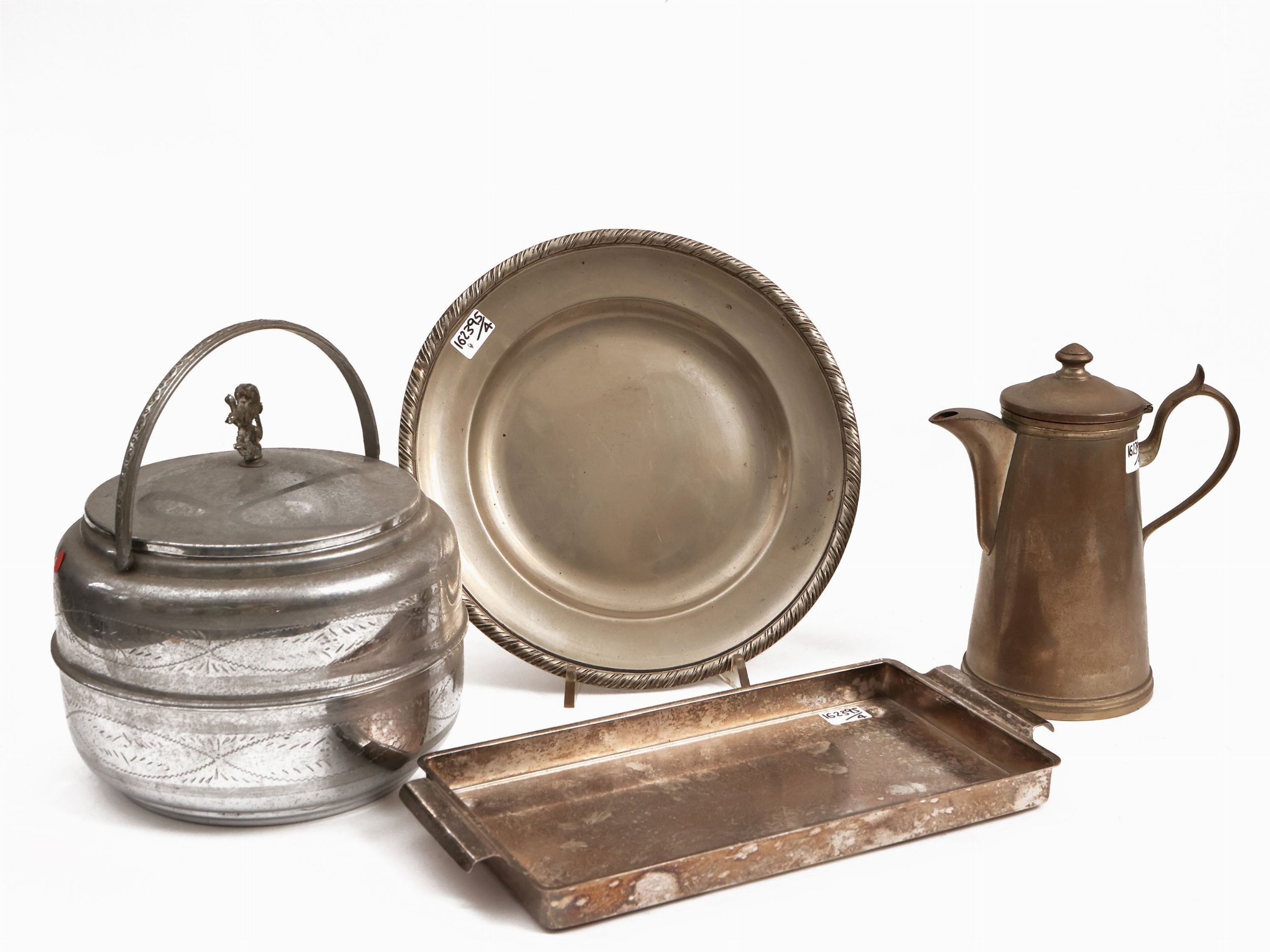 Assortimento di accessori per la casa in metallo argentato