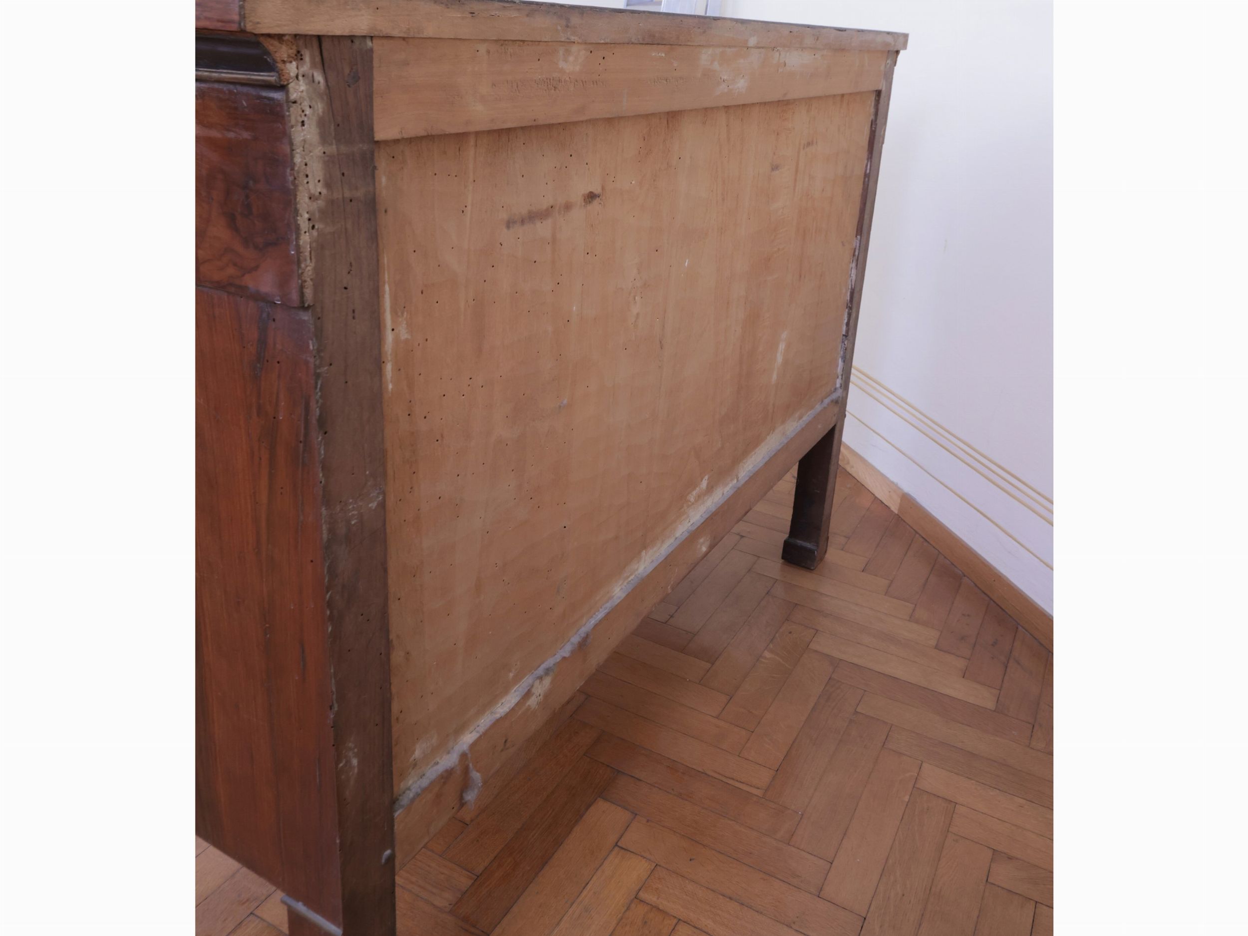 inizio del XIX secolo tre cassetti sul fronte dritto tra lesene piatte ebanizzate, piedi a plinto, applicazioni in tôle dorata, alcuni difetti