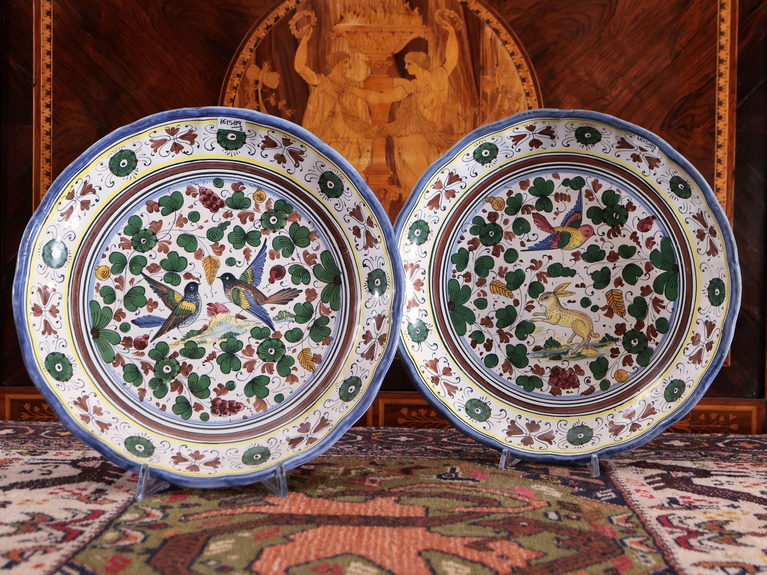 Coppia di piatti da parata in terracotta smaltata, Deruta
