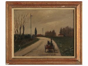 da cm 35x25 a cm 30x25 (2) XX secolo Paesaggio con ruscello. olio su tavoletta, firmato, in cornice; Paesaggio [..]