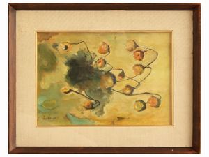 da cm 21x35 a cm 40x30 (3) XX secolo Vaso di fiori, olio su tela, firmato Romano, in cornice; Campagna in fiore, [..]