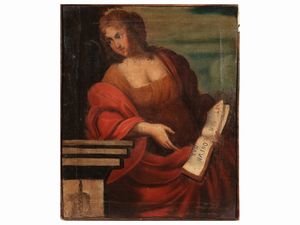 cm 48x40 secolo XVIII/XIX olio su tela, in cornice, iscritto al retto ut non confun/dar, difetti