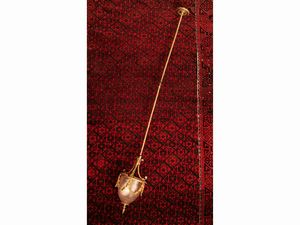 h cm 87x49x44 XIX secolo piano e base imbottiti e rivestiti in tessuto giallo oro con dettagli in passamaneria, [..]
