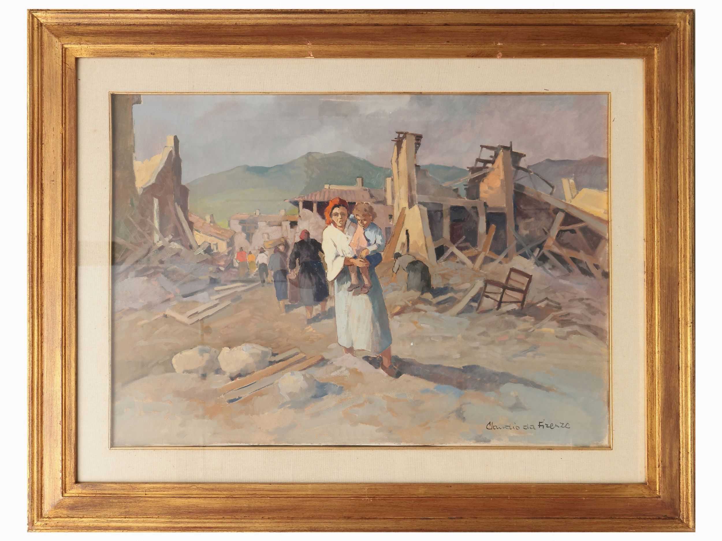 XX secolo olio su tela, titolato e firmato al verso, in cornice