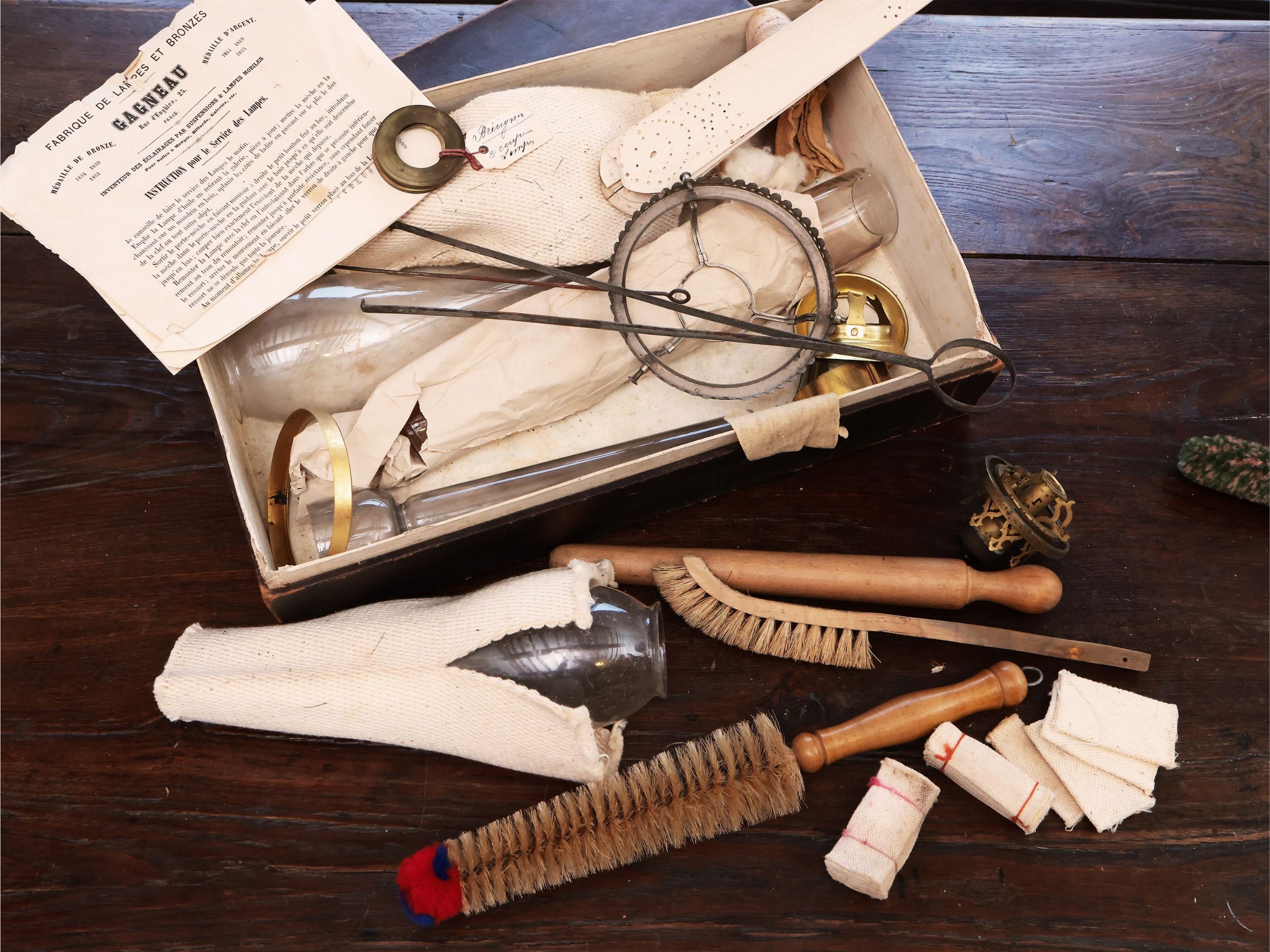 inizio del XX secolo uno in opaline bianca ed uno in metallo, corredati da scatola di accessori, difetti