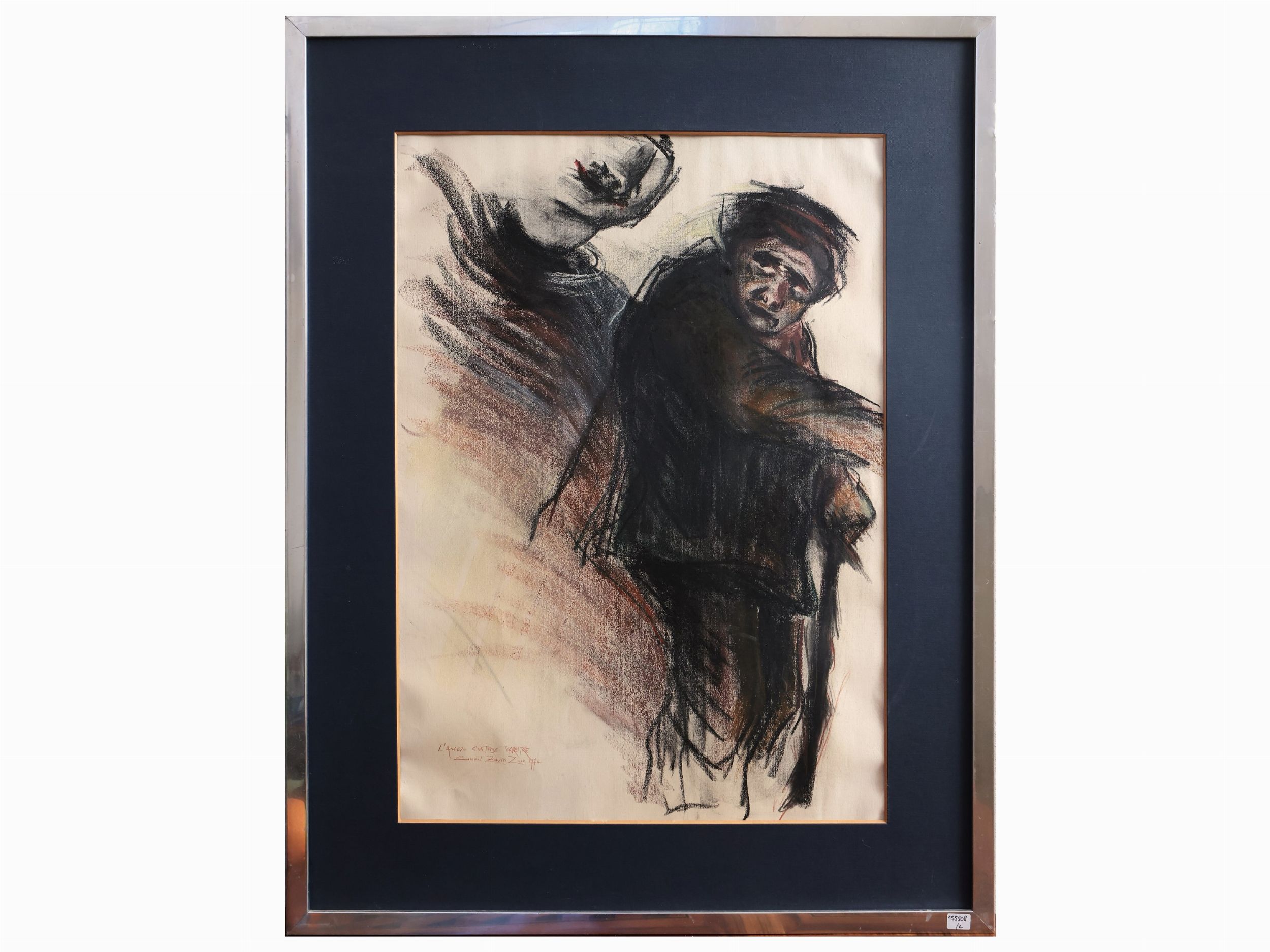 cm 64x46 , cm 35x44 XX secolo uno realizzato a carboncino e sanguigna su carta raffigurante L'angelo custode terrestre, firmato e datato Silian Zanetti Zilla e datato 1974, l'altro a inchiostro su carta di Guido del Fungo, firmato e datato 1965, in cornice