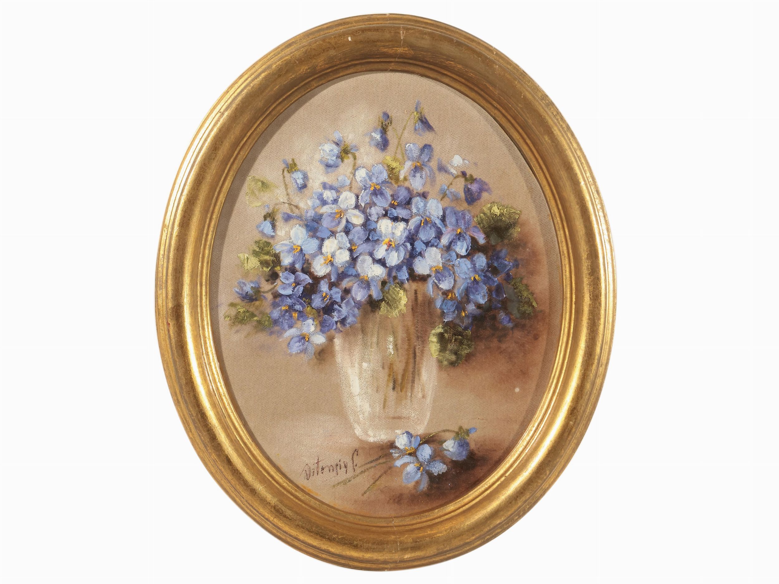XX secolo Ortensia, olio su tela applicata a cartone, titolati, in cornice