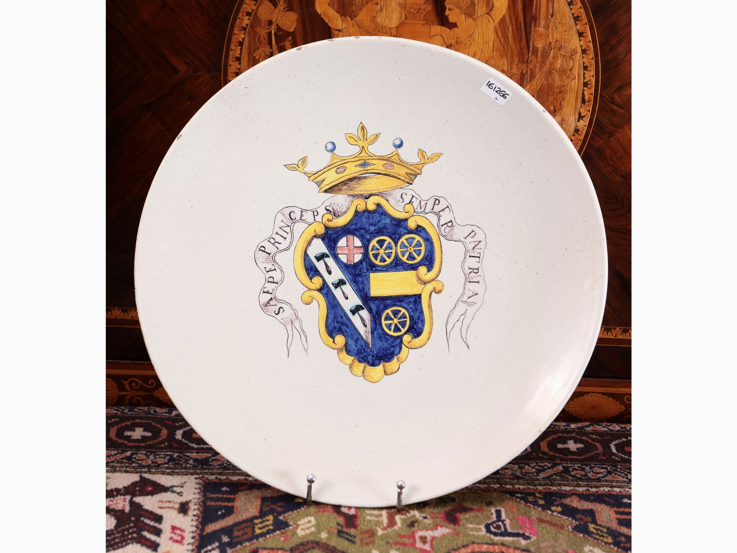 inizio del XX secolo centrato da stemma gentilizio coronato tra volute di un cartiglio recante motto