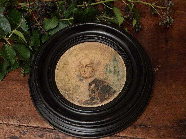 tempera su scagliola di forma circolare, in cornice ebanizzata, alcuni difetti