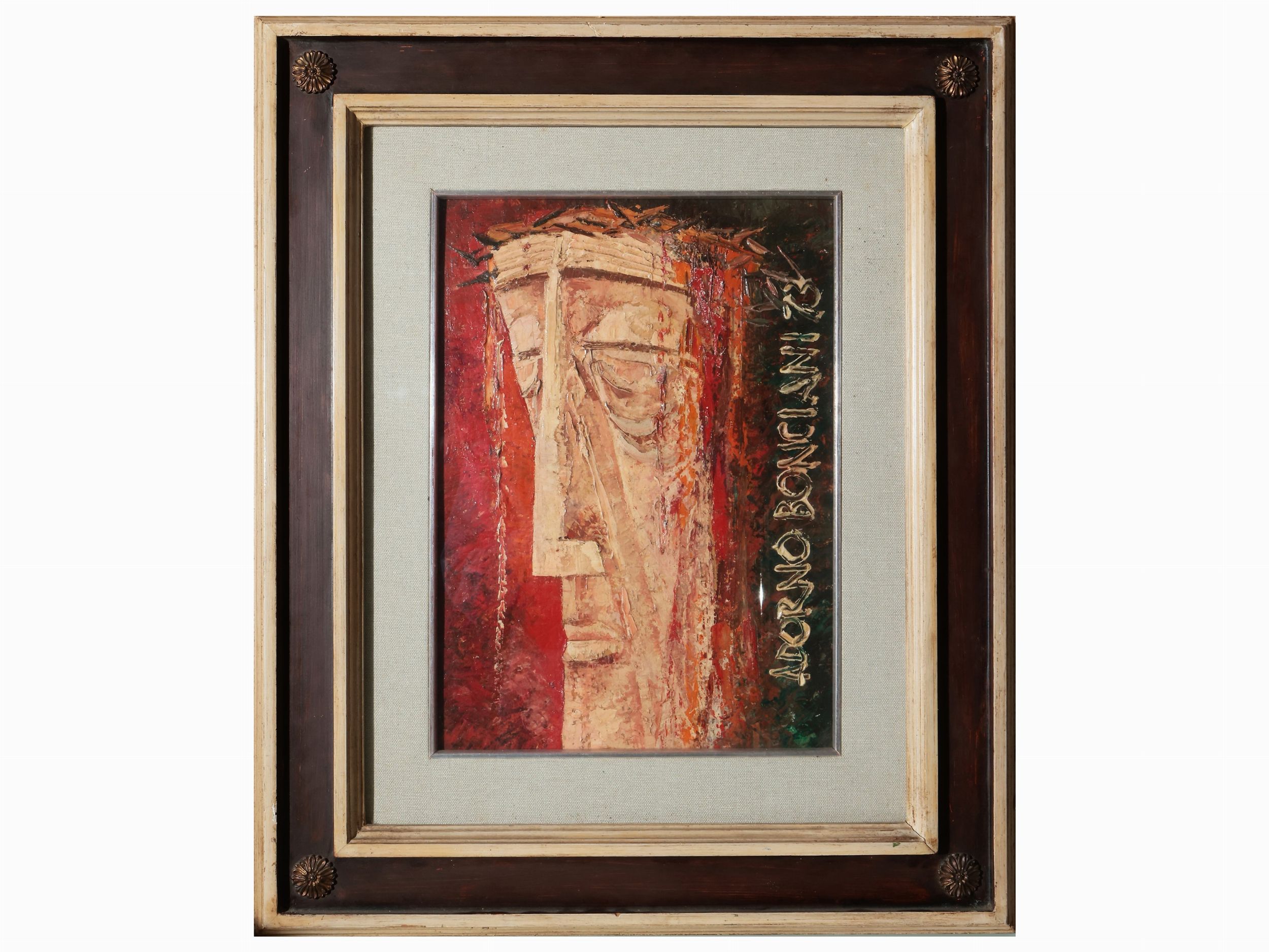 XX secolo olio su cartone, (controllare supporto) datato e firmato, datato e firmato al verso, in cornice