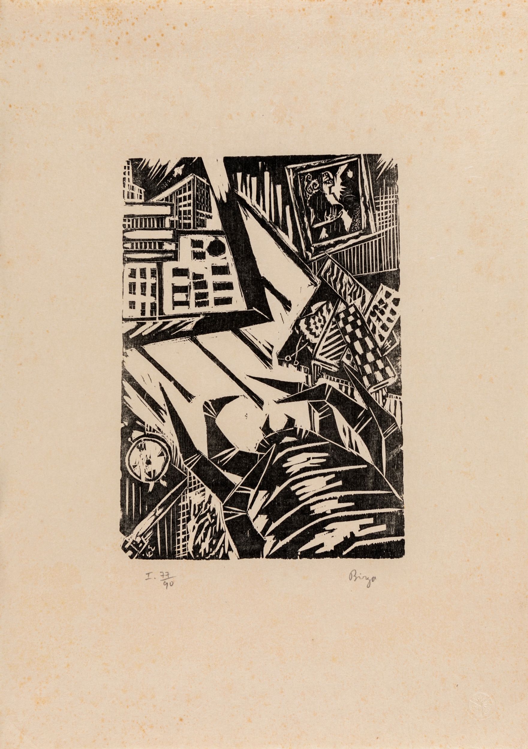 Lotto di due xilografie di Sergio Birga, cm 65x46 l'una. Entrambe firmate e numerate 'Birga 77/90'. Timbro a secco ed etichetta dello stampatore.