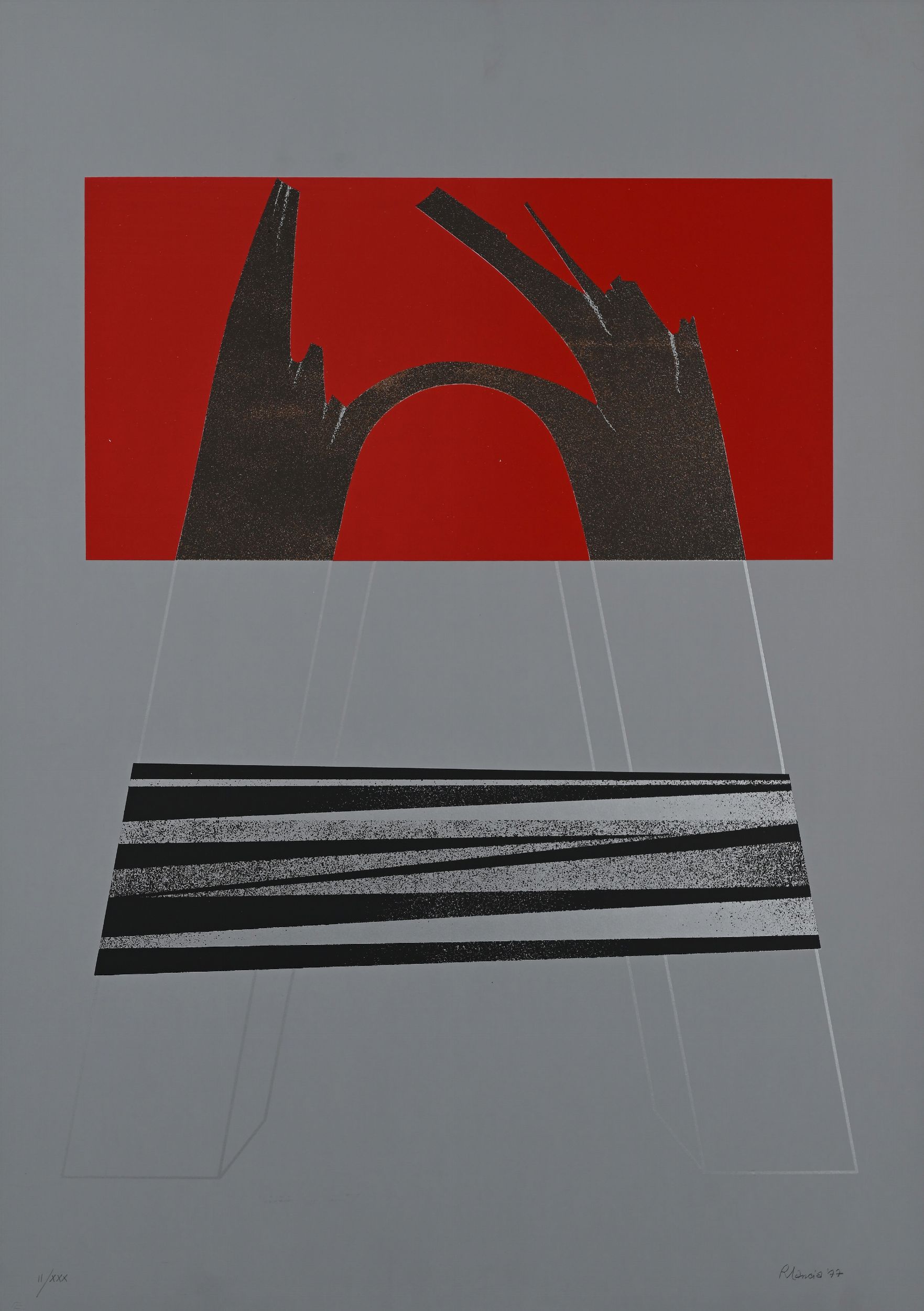 1) Rosanna Lancia, Senza titolo 1977, cm 70x50, firma, data e numerazione II/XXX 2) Romano Rizzato, Percosso, cm 70x50, firma, data, titolo e numerazione 42/90