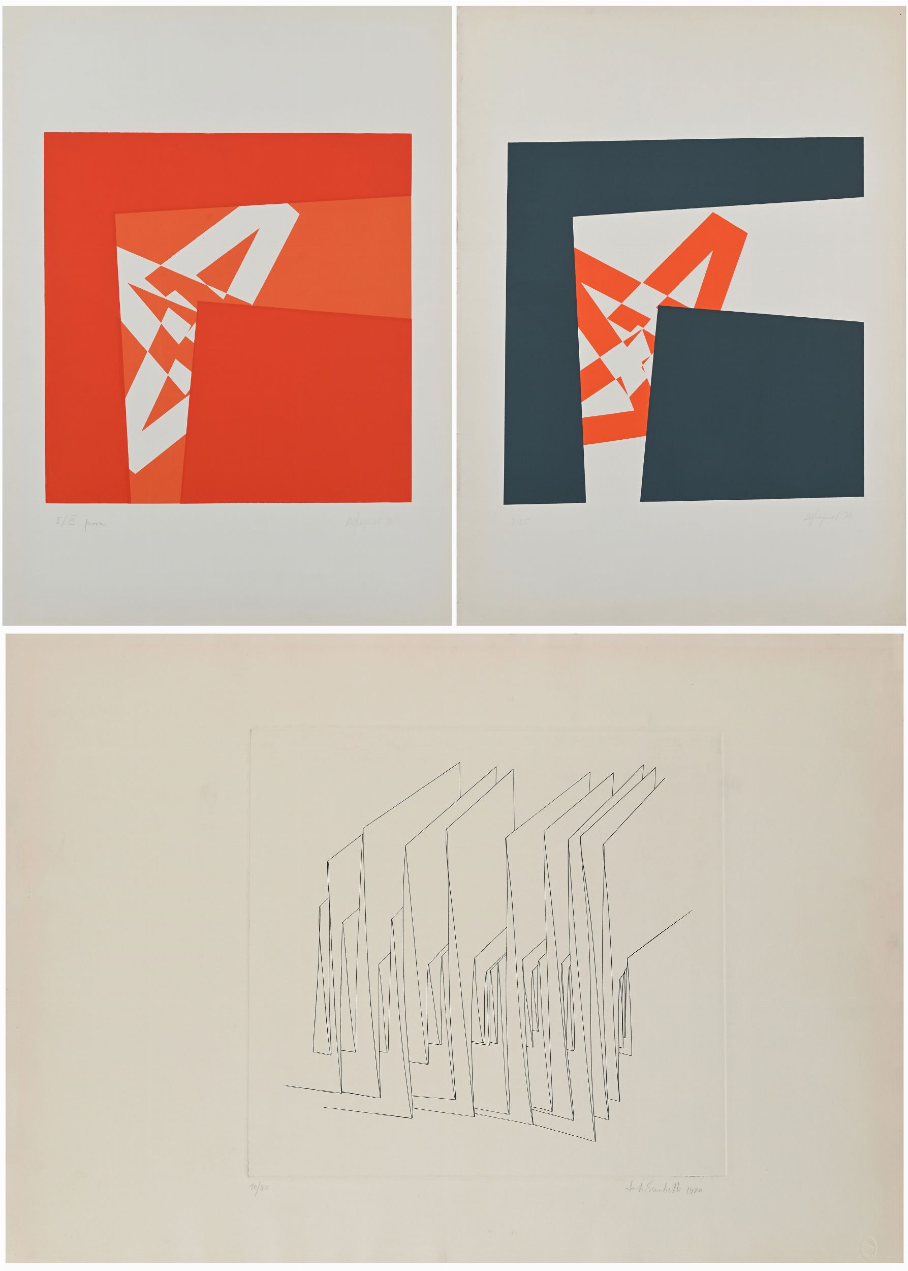1) Dante Scarabelli, Senza titolo 1970, Incisione cm 50x70, firma data e numerazione 10/40 2) Renato Spagnoli, Senza titolo, 1974, cm 70x50. Firma, data e numerazione 7/25 3) Renato Spagnoli, Senza titolo, 1974, cm 70x50, firma data e numerazione I/III prova