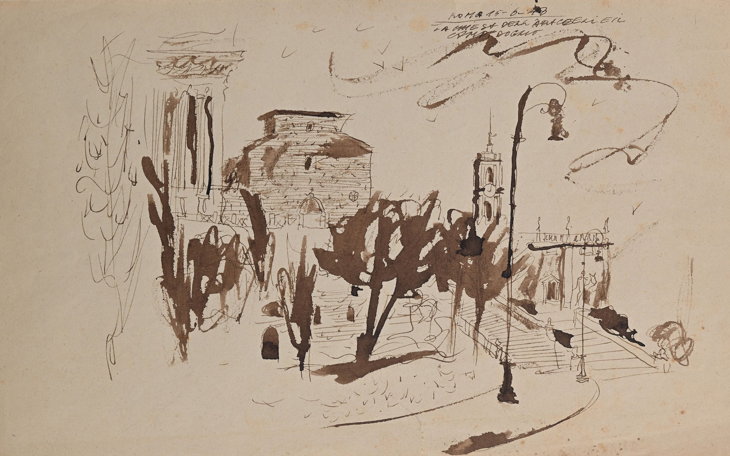 Entrambi titolati e datati 'Il Campidoglio Roma 15-6-48 / Roma 15-6-48 La Chiesa dell'Ara Coeli e il Campidoglio'.