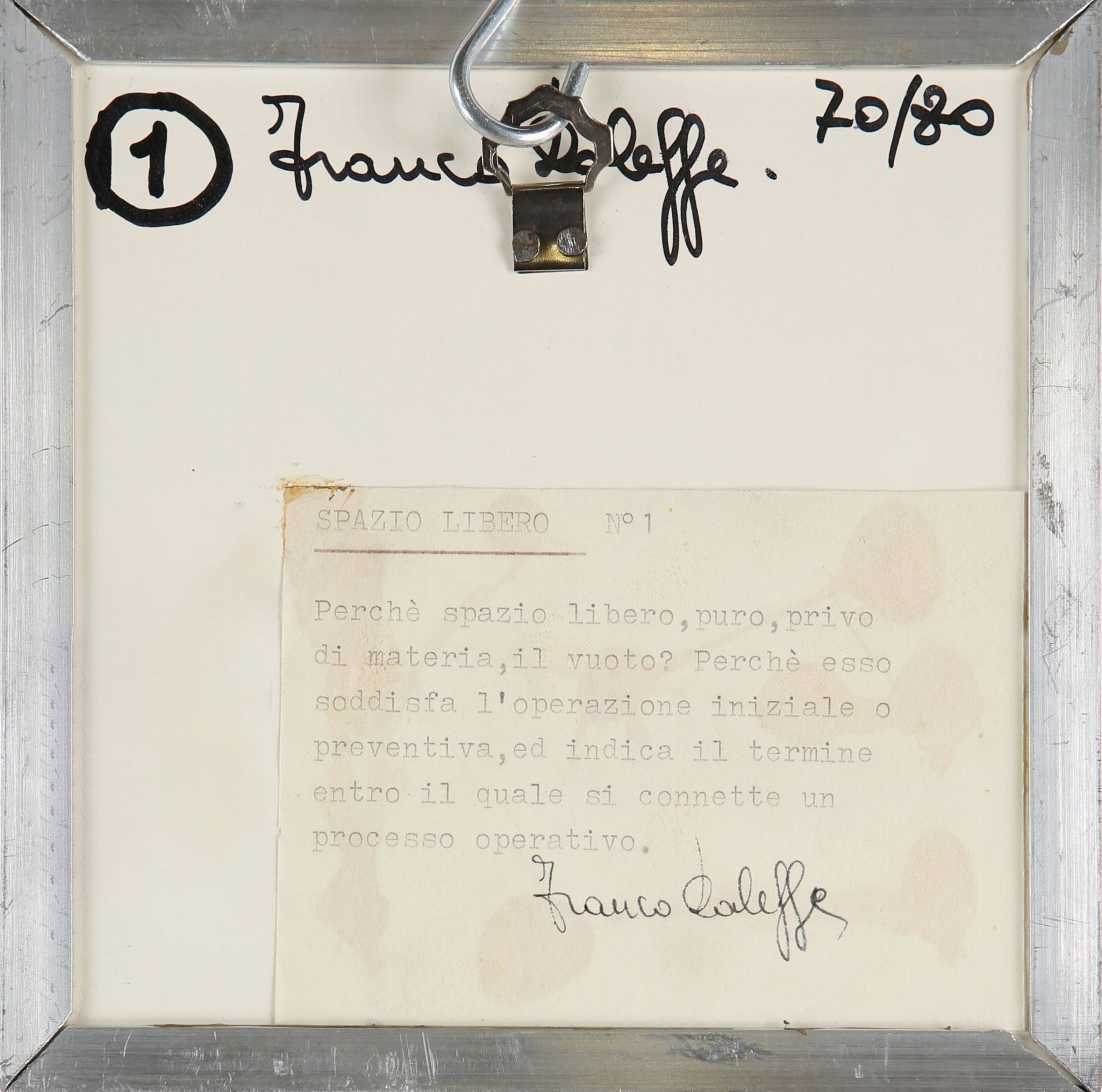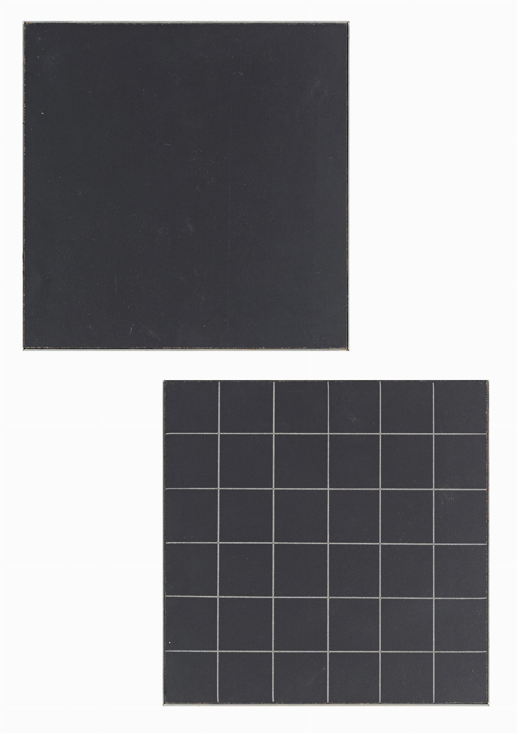 A) Spazio Libero N.1, 1970/80, tavola mdf, cm 15x15, al verso reca firma e data 'Franco Daleffe 70/80' B) Spazio Strutturato N.2, 1970/80, tavola mdf, cm 15x15, al verso reca firma e data 'Franco Daleffe70/80'
