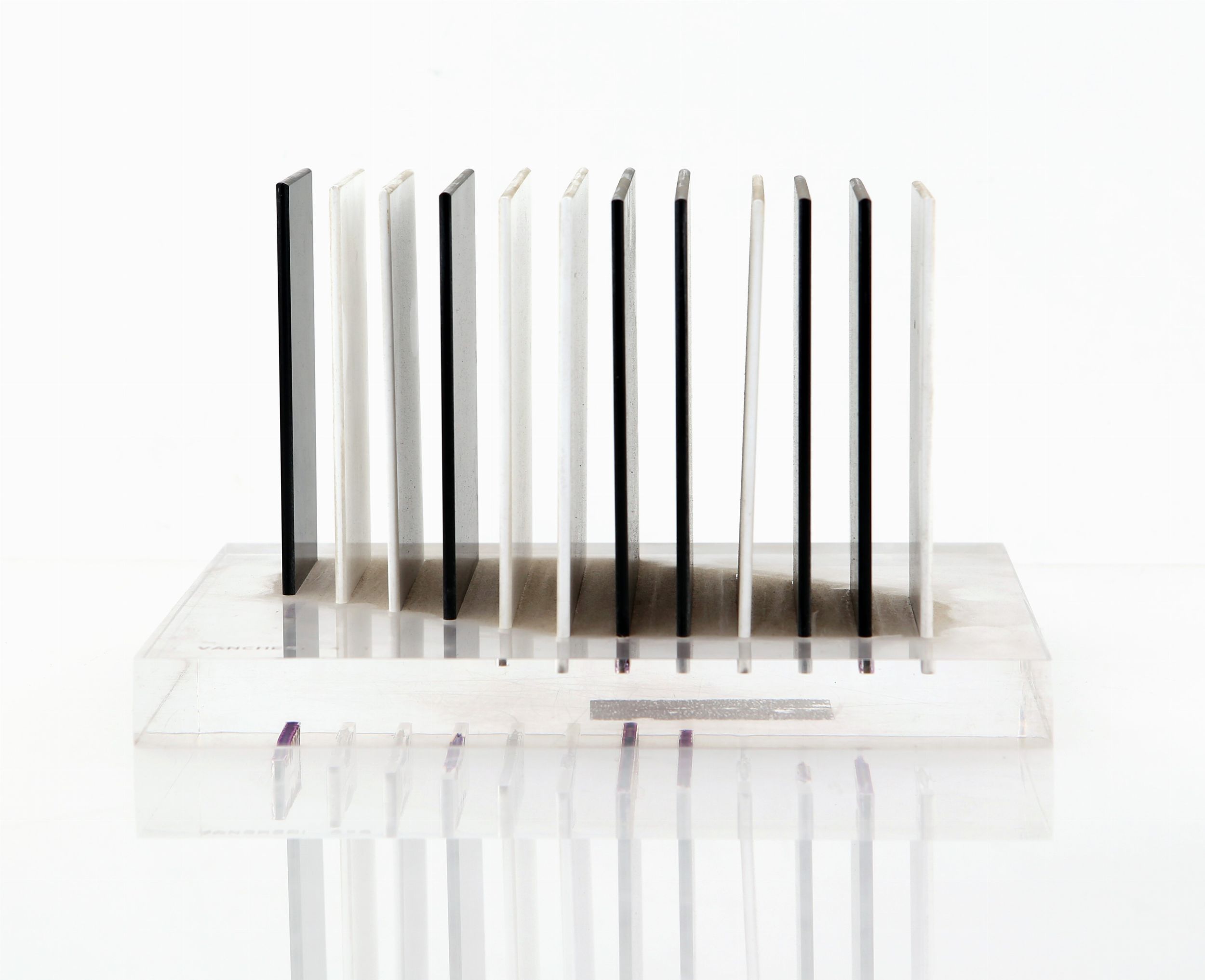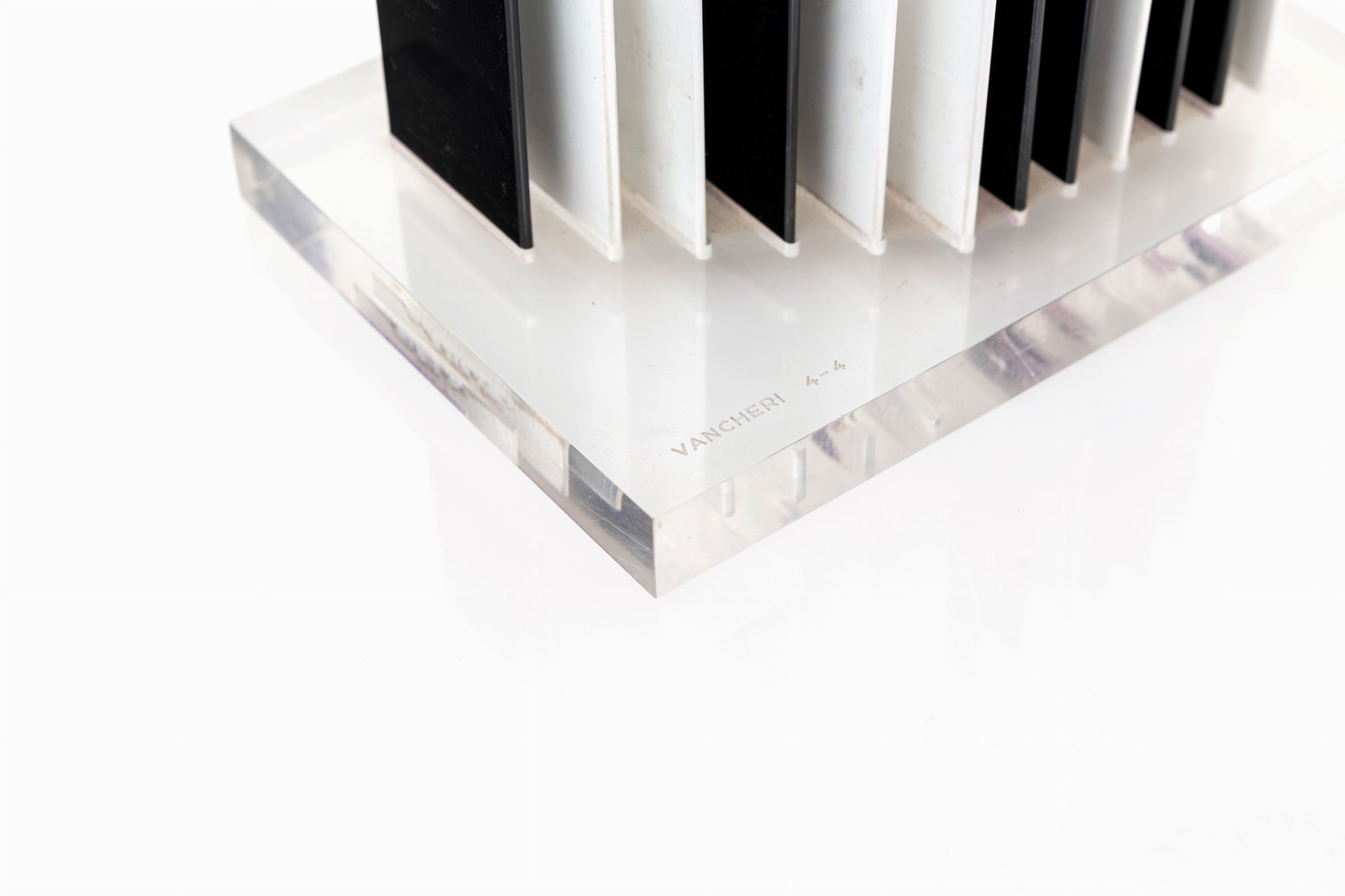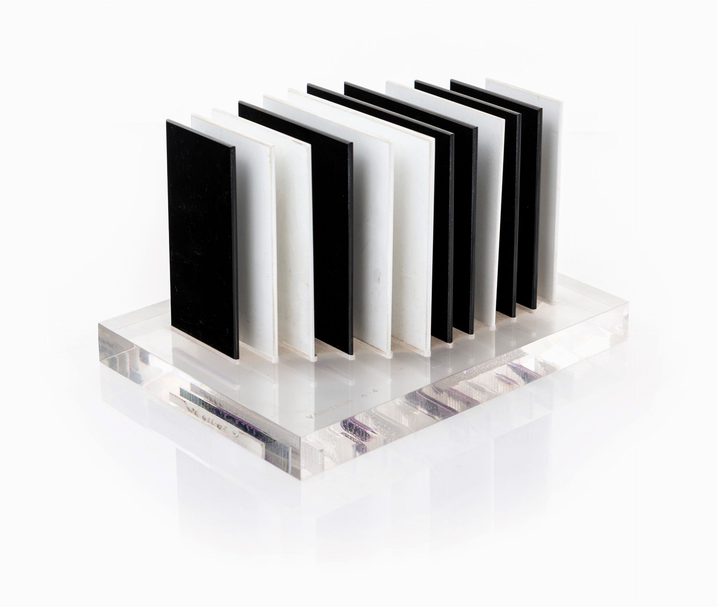 Scultura in plexiglas e plastica laccata bianca e nera, cm 15x21x12,5(h)