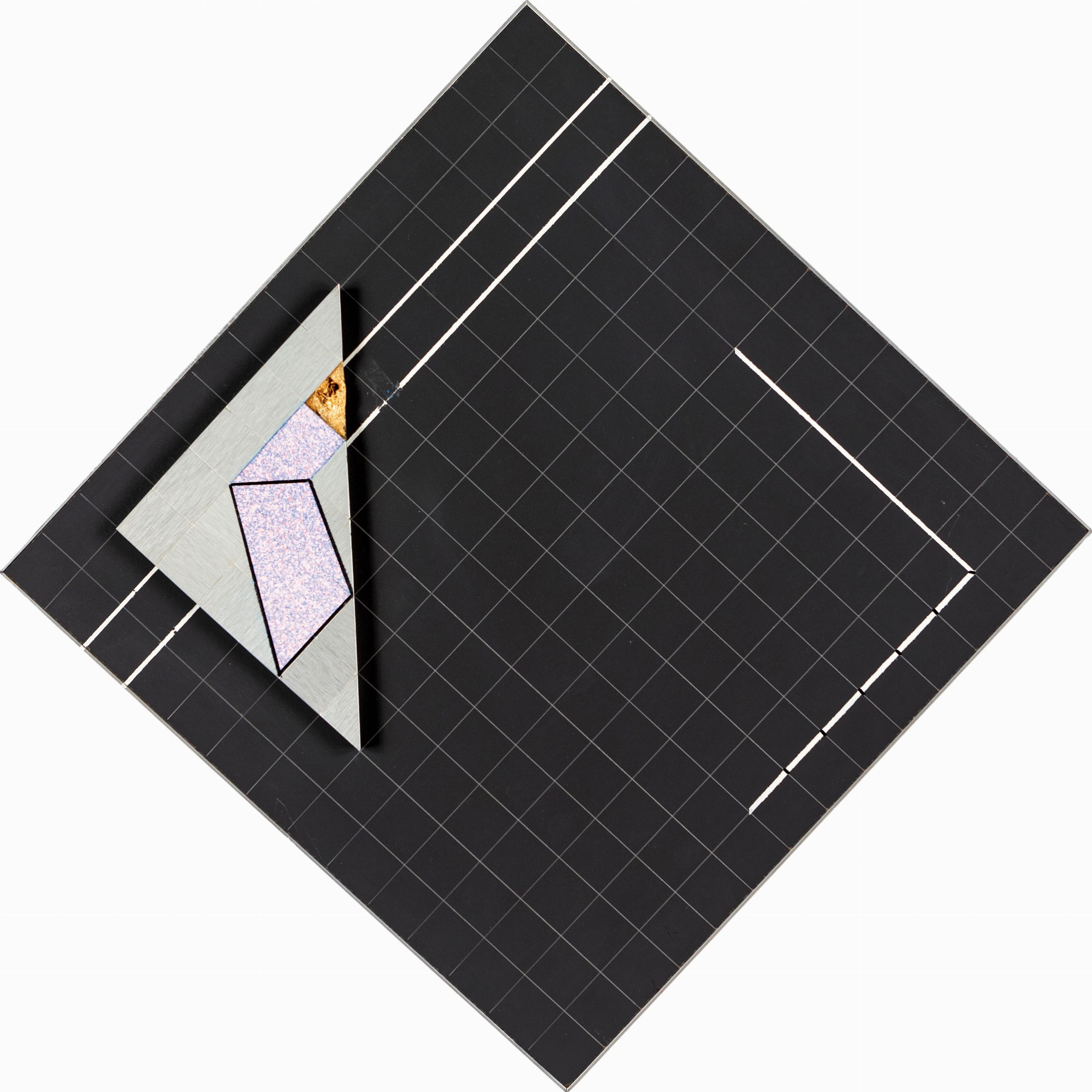 Tecnica mista (pennarello, tempera, alluminio) su compensato, cm 35,5x35,5