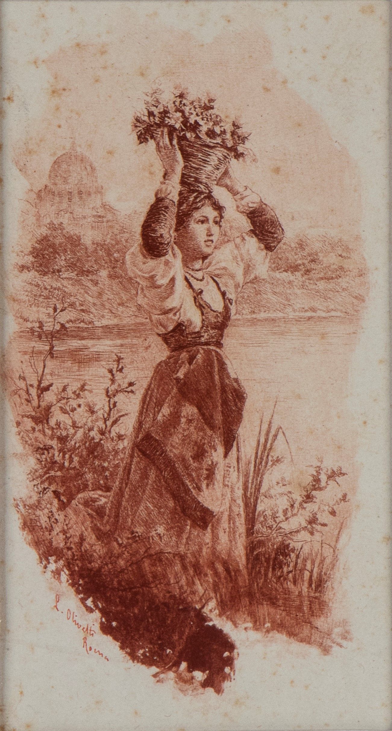 Luigi Olivetti : Donna con un cesto di frutta  - Asta Opere su carta. Stampe, disegni, foto d'epoca - Associazione Nazionale - Case d'Asta italiane